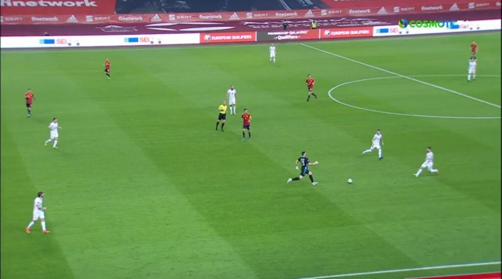 Το Κόσοβο πέτυχε ένα απίστευτο γκολ, καθώς μετά το λάθος του κίπερ των Ισπανών, ο Χαλίμι έστειλε την μπάλα στα δίχτυα για το 2-1 λίγο πιο μπροστά από το κέντρο!