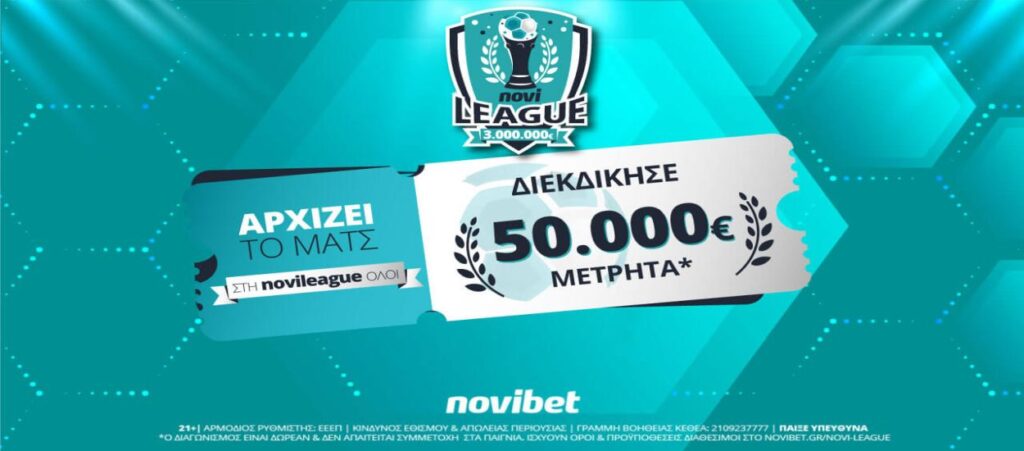 *Ο ΔΙΑΓΩΝΙΣΜΟΣ ΕΙΝΑΙ ΔΩΡΕΑΝ & ΔΕΝ ΑΠΑΙΤΕΙΤΑΙ ΣΥΜΜΕΤΟΧΗ ΣΤΑ ΠΑΙΓΝΙΑ. ΙΣΧΥΟΥΝ ΟΡΟΙ & ΠΡΟΫΠΟΘΕΣΕΙΣ ΔΙΑΘΕΣΙΜΟΙ ΣΤΟ NOVIBET.GR/NOVI–LEAGUE