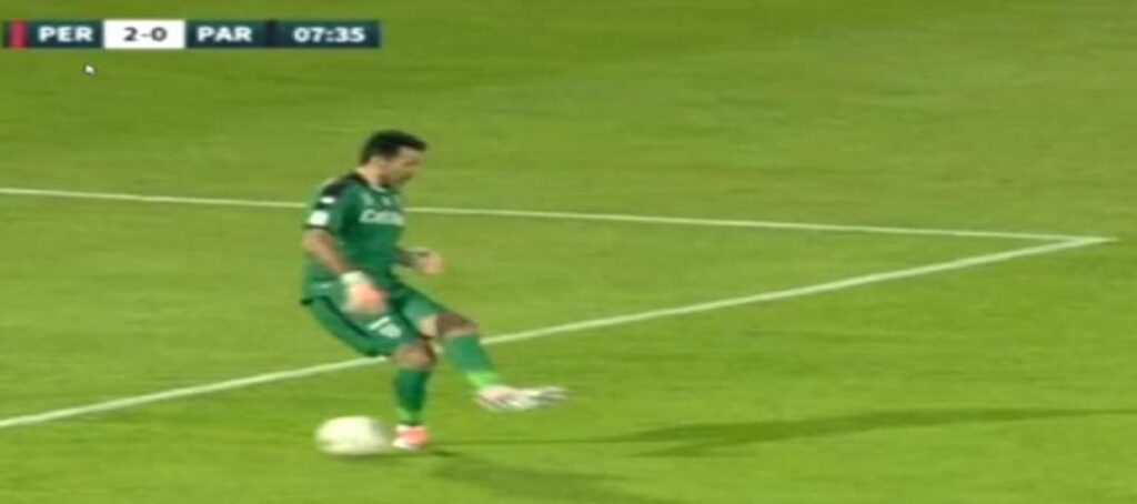 Ο 44χρονος τερματοφύλακας βρισκόταν έξω από τη μεγάλη περιοχή και απέτυχε παταγωδώς να διώξει την μπάλα μετά από πάσα συμπαίκτη του, με αποτέλεσμα ο επιθετικός της Περούτζια να τσιμπήσει την μπάλα και να σκοράρει σε κενή εστία, διπλασιάζοντας τα τέρματα της ομάδας του μόλις στο 8ο λεπτό της αναμέτρησης, αφού είχε προηγηθεί και ένα εύστοχο πέναλντι των γηπεδούχων.