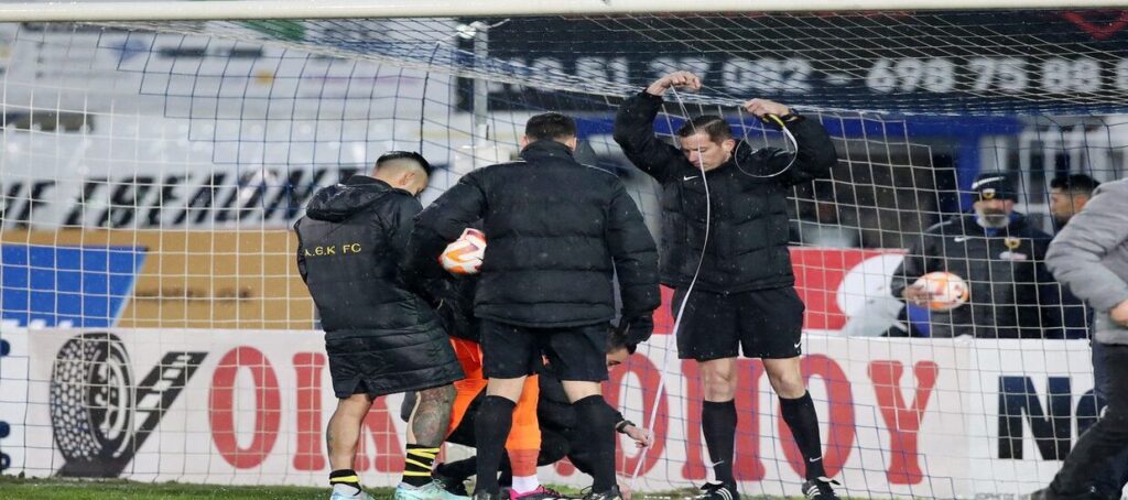 Σε αναβολή οδηγήθηκε το ματς της ΑΕΚ με τον Ατρόμητο στο Περιστέρι, καθώς τα δοκάρια ήταν 7 εκατοστά κοντύτερα από ότι επιτρέπει ο κανονισμός.