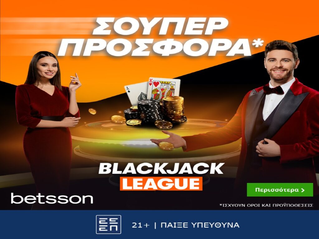 Το Blackjack League έφτασε στην Betsson! Μία σούπερ προσφορά* με μπόλικο Blackjack, αμέτρητα δώρα*, Live dealer και καθημερινή δράση!