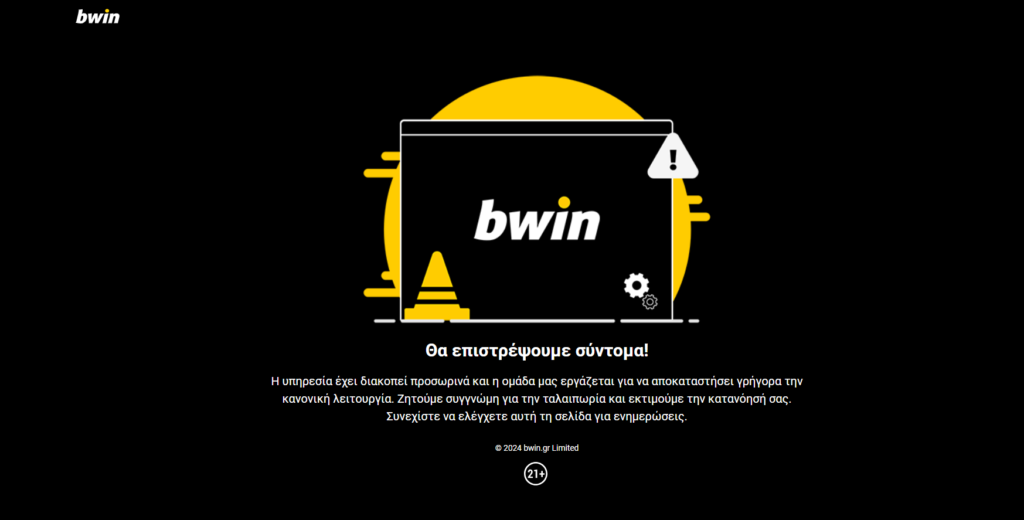 Ανησυχία έχει προκληθεί στα μέλη των στοιχηματικών εταιρίων Bwin, Sportingbet και Vistabet, καθώς εδώ και μερικές ώρες έχει διακοπεί η λειτουργία των προαναφερθεισών υπηρεσιών. Κάτι τέτοιο διαπιστώνεται κατά την είσοδο στην ιστοσελίδα των εταιριών, όπου και εμφανίζεται ένα μήνυμα «Επιστρέφουμε σύντομα».