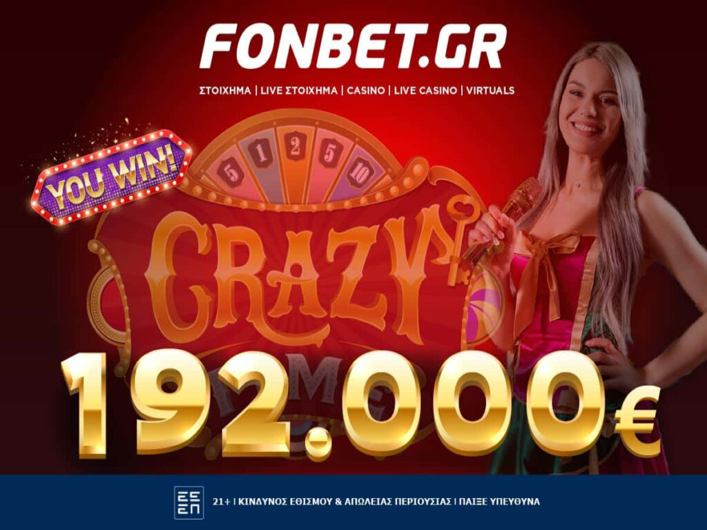 Crazy Time: Παίκτης της Fonbet κέρδισε 192.000€ στο Live Casino!