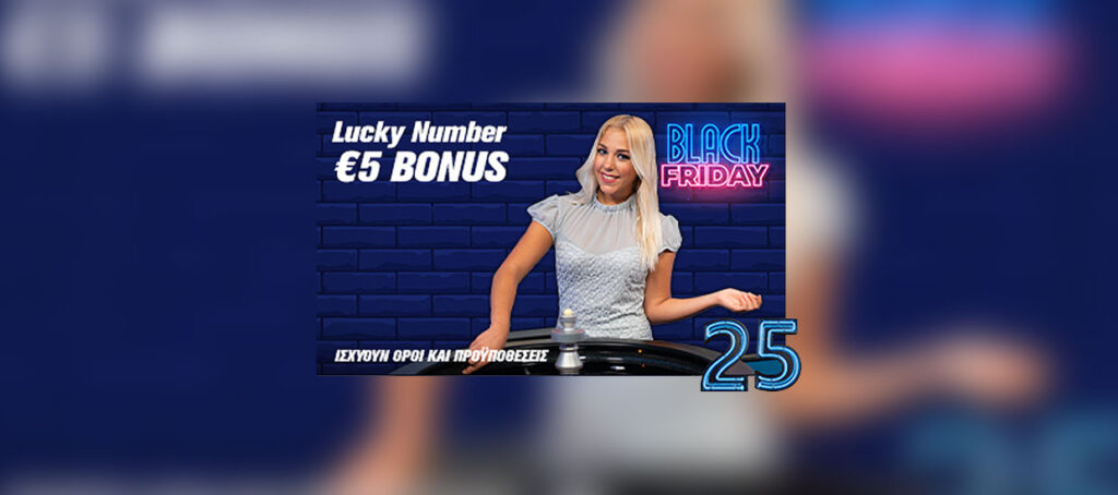 Ιδιαίτερα ενόψει της Black Friday, οι παίκτες μπορούν να διασκεδάσουν στα Live τραπέζια και να εκμεταλλευτούν τις σούπερ προσφορές* Black Card και Lucky Number 25.