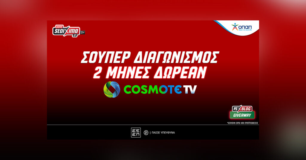 Πέντε τυχεροί θα κερδίσουν από δύο μήνες δωρεάν, για να απολαύσουν τα sports κανάλια της COSMOTE TV, με τον διαγωνισμό* του PS Blog.