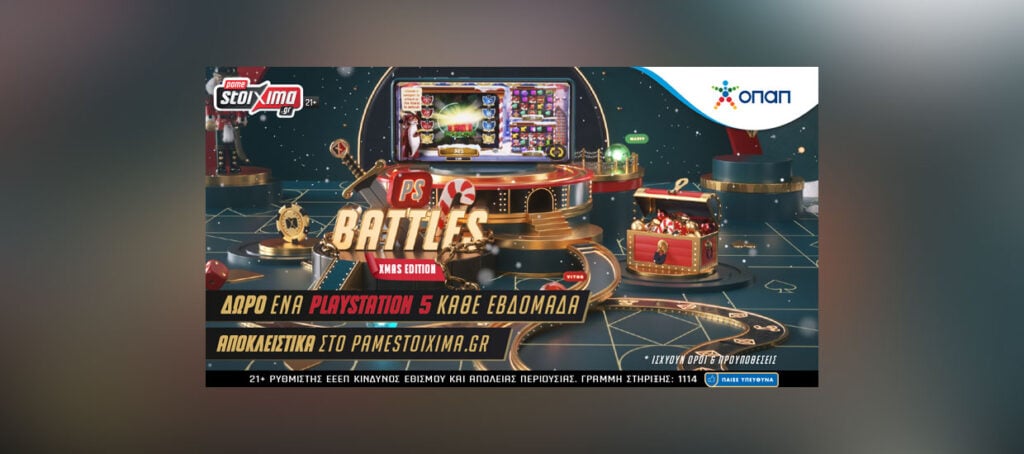Χριστούγεννα σημαίνουν… δώρα και είναι ώρα για δώρα τα οποία θα δώσουν χαρά σε κάθε gamer. To Pamestoixima.gr έχει ένα μοναδικό δώρο* κάθε εβδομάδα για ένα τυχερό παίκτη του, καθώς η συμμετοχή σας στο αποκλειστικό και δωρεάν PS Battles μπορεί να σας φέρει ως δώρο ένα Playstation 5 κάθε εβδομάδα! Τώρα πια, η διασκέδαση ανεβαίνει επίπεδο, αφού έχετε δυνατότητα να διεκδικήσετε μία από τις πιο αγαπημένες κονσόλες των παικτών μέσα από την Χριστουγεννιάτικη έκδοση του δημοφιλούς PS Battles, του οποίου θα έχει διάρκεια ως τις 8 Ιανουαρίου.