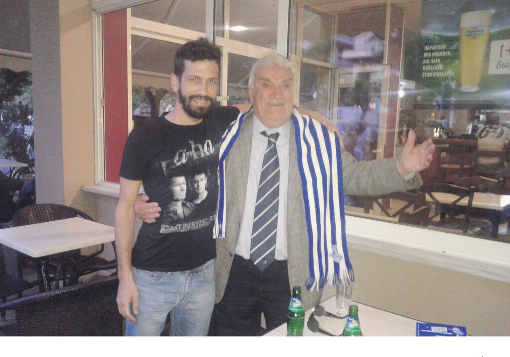 Στην απογευματινή μας συνάντηση τον Απρίλιο του ’16 στο καφενείο του Αγίου Γεωργίου στην Ακαδημία Πλάτωνος, στα 150 μέτρα από το σπίτι όπου έμενε επί 40 χρόνια με τη γυναίκα και τα δύο παιδιά του -τα παιδιά μεγάλωσαν και έφυγαν, είναι όμως αυτά που τον συνόδευαν κάθε φορά στο γήπεδο- ο Εθνικάρας ήταν ασταμάτητος.