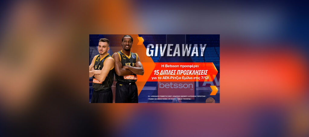 H Betsson ως Μεγάλος Χορηγός της ΑΕΚ BC, προσφέρει 15 διπλές προσκλήσεις στην Betsson Κερκίδα για τον αγώνα ΑΕΚ-Ρέτζιο Εμίλια στις 7 Δεκεμβρίου για το Basketball Champions League.