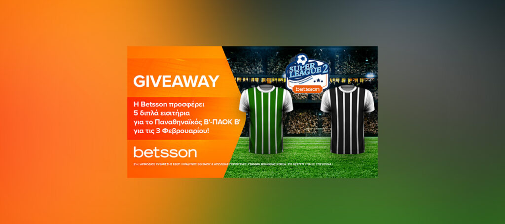 Η Betsson προσφέρει 5 δίπλες προσκλήσεις για την αναμέτρηση Παναθηναϊκός Β’ – ΠΑΟΚ Β’ την Παρασκευή 3 Φεβρουαρίου, στο πλαίσιο της 14ης αγωνιστικής της Betsson Super League 2!