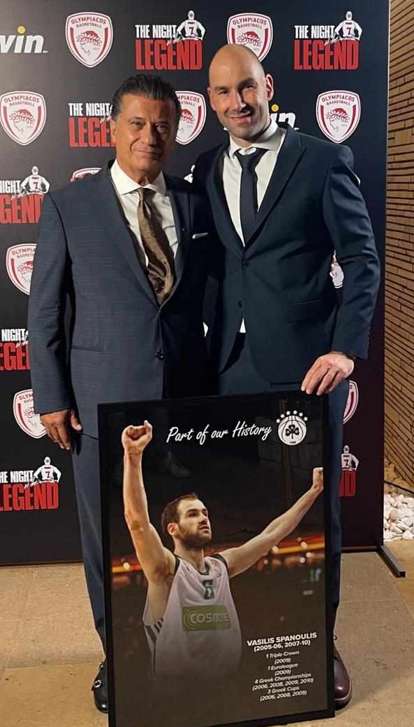 Όπως παρών ήταν και ο πρόεδρος της ΚΑΕ Παναθηναϊκός, Βασίλης Παρθενόπουλος, κουβαλώντας ένα δώρο από το μεγαλομέτοχο της ομάδας, Δημήτρη Γιαννακόπουλου. Παρέδωσε στον Σπανούλη μία πλακέτα που απεικονίζει τον Σπανούλη με τη φανέλα του Παναθηναϊκού, με τη φράση «Κομμάτι της Ιστορίας μας» και τους οκτώ τίτλους που κατέκτησε στο ΟΑΚΑ.