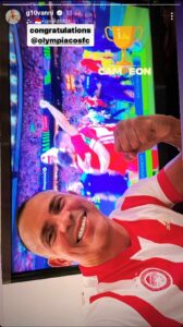 Σε ίδια κατάσταση ήταν και ίσως ο μεγαλύτερος παίκτης που φόρεσε τη φανέλα του Ολυμπιακού, ο Τζιοβάνι. Ο Βραζιλιάνος ανήρτησε ιστορία στον προσωπικό του λογαριασμό στο instagram, μετά το σφύριγμα της λήξης, φορώντας την εμφάνιση της ομάδος, εμφανώς ευτυχισμένος.