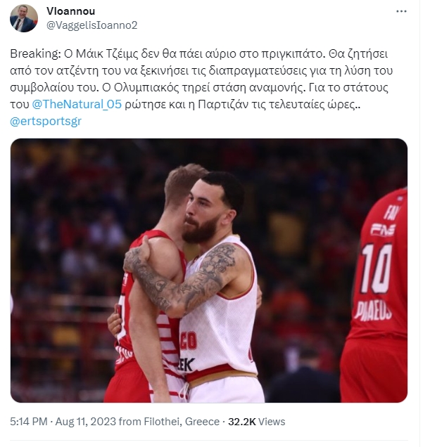 Πάντως ο Ολυμπιακός φαίνεται να έχει ανταγωνισμό. Σύμφωνα με το ίδιο tweet, για τον παίκτη ρώτησε τις τελευταίες ώρες και η Παρτίζαν.