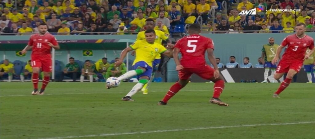 Η Βραζιλία τα βρήκε σκούρα απέναντι στην Ελβετία, δημιούργησε ελάχιστες ευκαιρίες, όμως τις έφτασε μία εξ’ αυτών για να πάρει το παιχνίδι. Σωτήρας της ο Κασεμίρο, ο ο οποίος με ένα εκπληκτικό βολέ ξέρανε τον Ζόμερ και την Ελβετία. Δείτε παρακάτω το στιγμιότυπο: