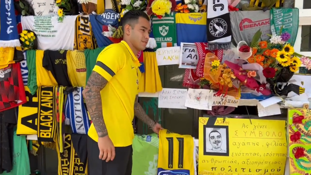 Ο Σέρχιο Αραούχο είχε σχηματίσει το «Α» με τα χέρια του, στο παιχνίδι Άρης-ΑΕΚ στο «Κλεάνθης Βικελίδης», μετά τη δολοφονία του Άλκη Καμπανού την 1η Φεβρουαρίου του 2022.