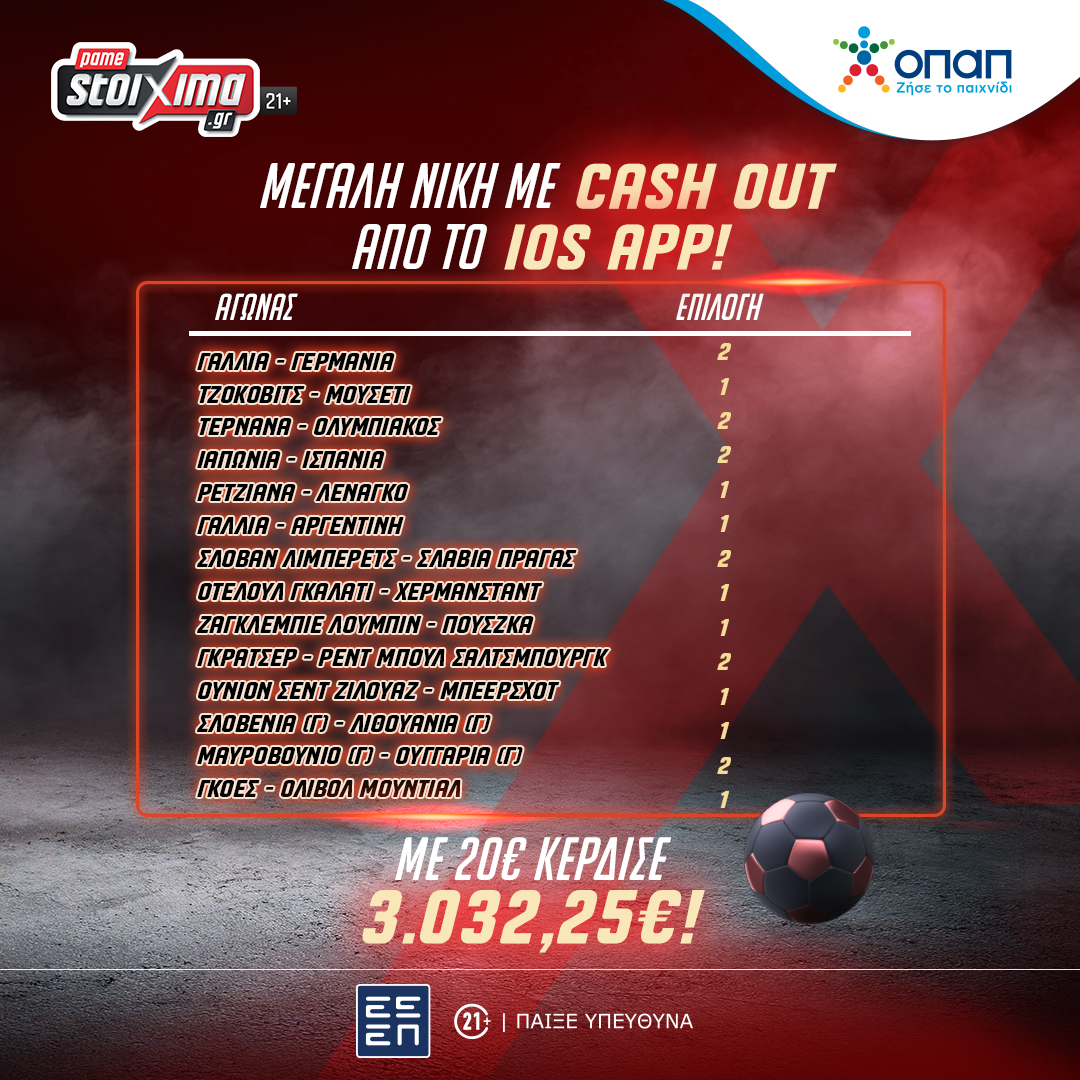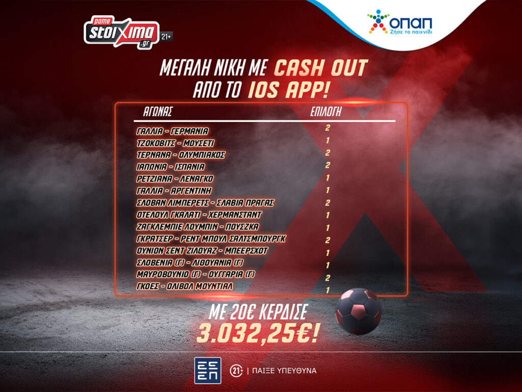 Μεγάλη νίκη στο στοίχημα: Έκανε cash out από το iOS App και κέρδισε €3.032,25!