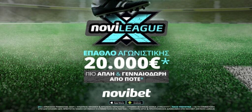 *Ο ΔΙΑΓΩΝΙΣΜΟΣ ΕΙΝΑΙ ΔΩΡΕΑΝ & ΔΕΝ ΑΠΑΙΤΕΙΤΑΙ ΣΥΜΜΕΤΟΧΗ ΣΤΑ ΠΑΙΓΝΙΑ. ΙΣΧΥΟΥΝ ΟΡΟΙ & ΠΡΟΫΠΟΘΕΣΕΙΣ ΔΙΑΘΕΣΙΜΟΙ ΣΤΟ NOVIBET.GR/NOVI-LEAGUE