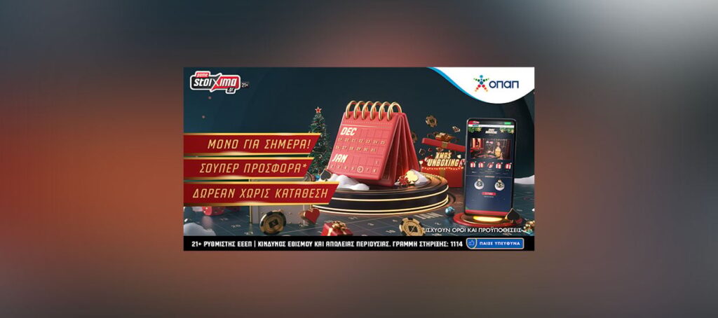 Τα Χριστούγεννα έφτασαν και τo Pamestoixima.gr φέρνει… ένταση και μεγαλύτερα δώρα για τους παίκτες του. Έτσι λοιπόν, ΜΟΝΟ ΓΙΑ ΣΗΜΕΡΑ (06/01), οι φίλοι του Live casino του Pamestoixima.gr θα έχουν την ευκαιρία να επωφεληθούν μιας μοναδικής, καταπληκτικής δωρεάν προσφοράς* για όλους, χωρίς οποιαδήποτε προσφορά κατάθεσης ή τζίρου.