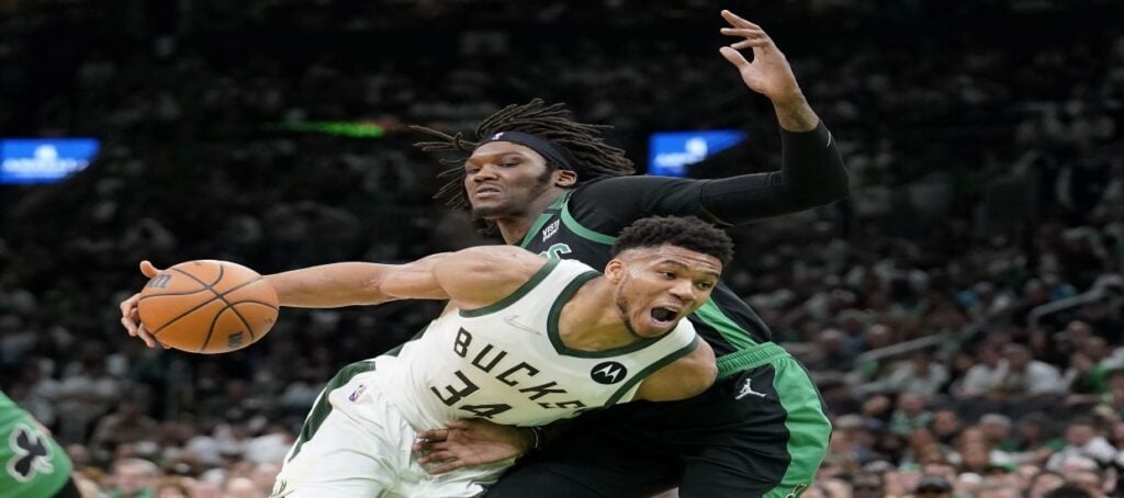 Με μία άμυνα που τσάκιζε κόκκαλα (11 κλεψίματα, 5 μπλοκ) και οδήγησε σε 18 λάθη τους αντιπάλους τους και έναν Γιάννη να κυριαρχεί σε κάθε φάση και να ολοκληρώνει τον αγώνα με τριπλ-νταμπλ (24 πόντοι, 13 ριμπάουντ, 12 ασίστ) οι Μπακς έφυγαν νικητές από την πρώτη μάχη στη Βοστόνη, κερδίζοντας άμεσα και το πλεονέκτημα έδρας.
