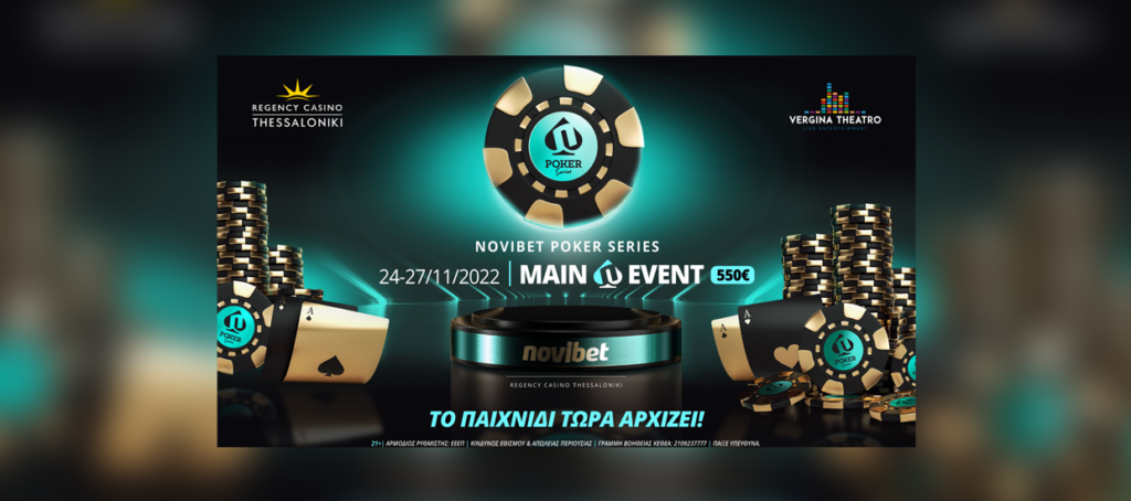 Το πρώτο Novibet Poker Series θα διεξαχθεί από τις 22 έως τις 27 Νοεμβρίου στην Θεσσαλονίκη, στο μεγαλοπρεπές Vergina Theatro του Regency Casino Thessaloniki.
