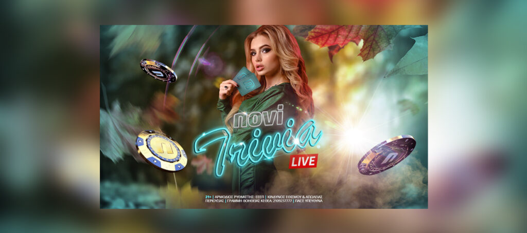 Το Novi Trivia Show είναι ένα ζωντανό παιχνίδι που εκπέμπεται από το live καζίνο, σε επιλεγμένες ημερομηνίες κάθε μήνα. Αυτό το Σαββατοκύριακο, δύο φανταστικές εκπομπές θα γεμίσουν τα απογεύματα του Σαββάτου και της Κυριακής στις 19:00!