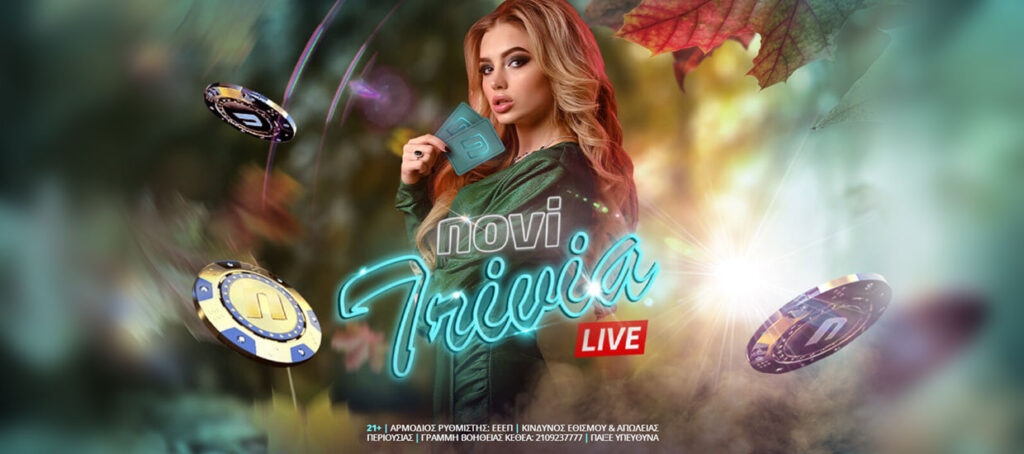 Το Novi Trivia Show είναι ένα ζωντανό παιχνίδι που εκπέμπεται από το live καζίνο, σε επιλεγμένες ημερομηνίες κάθε μήνα. Αυτό το Σαββατοκύριακο, δύο φανταστικές εκπομπές θα γεμίσουν τα απογεύματα του Σαββάτου και της Κυριακής στις 19:00!