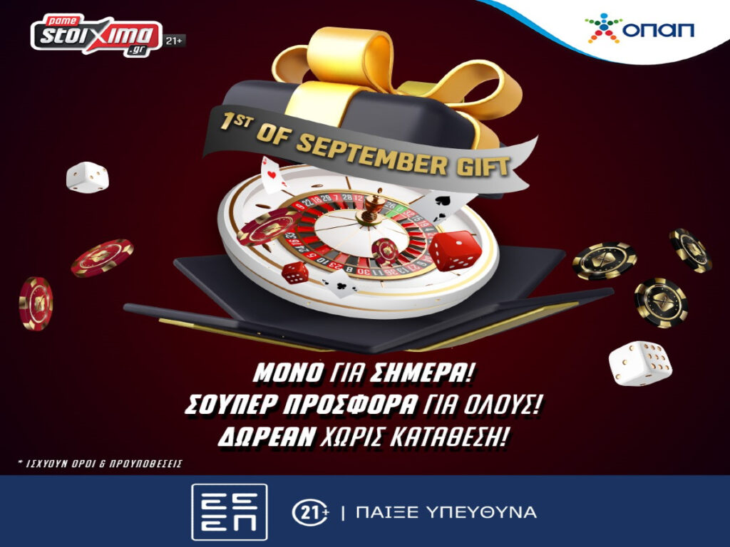Ο Σεπτέμβριος ήρθε, λοιπόν, και φέρνει μοναδικές εκπλήξεις* στο Pamestoixima.gr! Όπως κάθε πρώτη ημέρα του μήνα, έτσι και τώρα, το Pamestoixima.gr τους υποδέχεται όλους και μία σούπερ προσφορά* δωρεάν χωρίς κατάθεση!