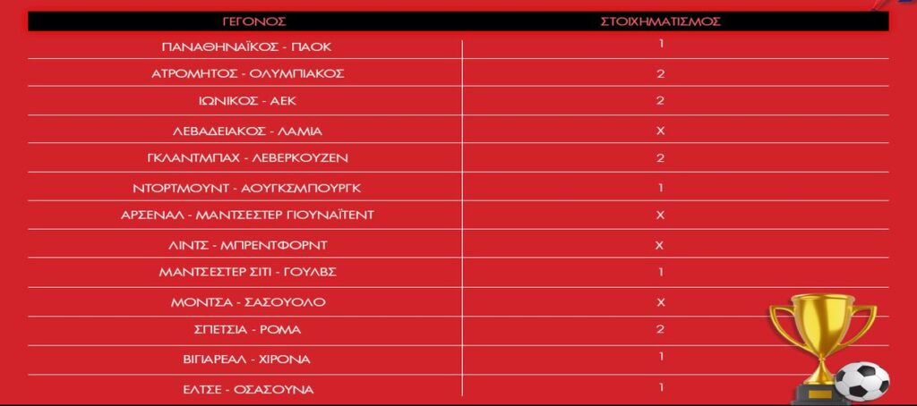 Αν έχεις τύχη διάβαινε… Ένας παίκτης του Pamestoixima.gr αποφάσισε να παίξει 18 ευρώ σε μια 13άδα αγώνων την Κυριακή στο κουπονι στοιχηματοσ. Μπορεί να μην επιβεβαιώθηκαν όλες οι προβλέψεις του, όμως αυτό δεν τον πτόησε καθόλου. Κάνοντας cash out την κατάλληλη στιγμή έγινε πλουσιότερος κατά 27.771 ευρώ!