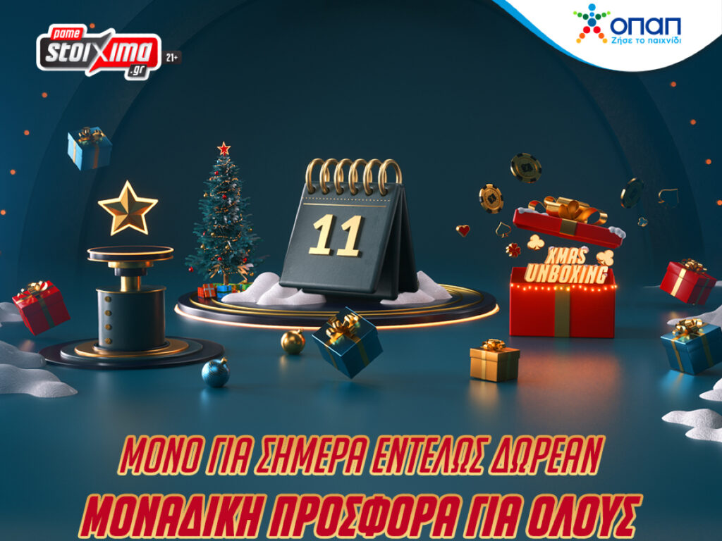 Το πιο εορταστικό ημερολόγιο προσφορών* το Xmas Unboxing, είναι στο Pamestoixima.gr και σήμερα τους περιμένει όλους μια σούπερ, χριστουγεννιάτικη προσφορά*, δωρεάν χωρίς κατάθεση!