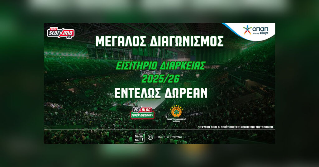 Ο νέος, μεγάλος διαγωνισμός* του PS Blog σού δίνει τη δυνατότητα να κερδίσεις ένα διαρκείας του Παναθηναϊκού AKTOR, για να βρίσκεσαι σε όλους τους εντός έδρας αγώνες της σεζόν 2025-26.
