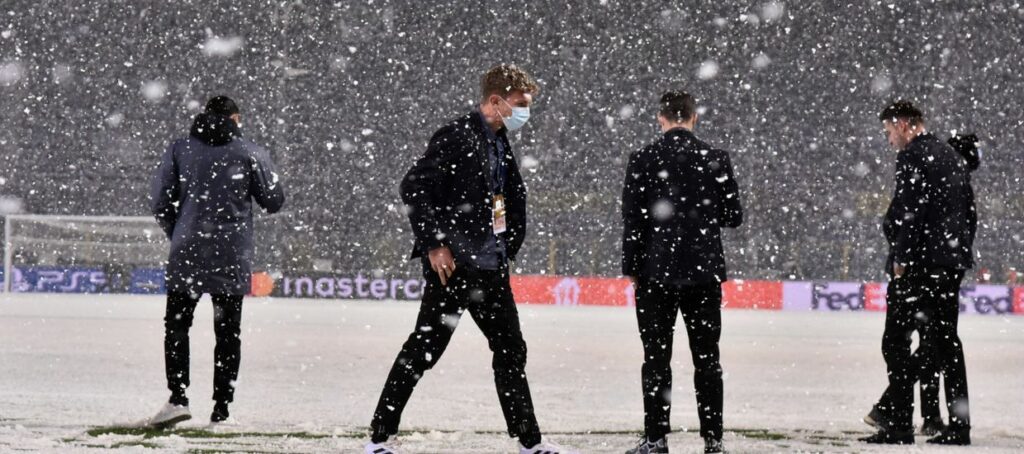 Η συνεχής χιονόπτωση δεν επέτρεψε τη διεξαγωγή της αναμέτρησης Αταλάντα – Βιγιαρεάλ. Αρχικά δόθηκε 20λεπτη παράταση στην ώρα έναρξης, ωστόσο, δεν κατέστη δυνατόν να καθαρίσει ο αγωνιστικός χώρος.