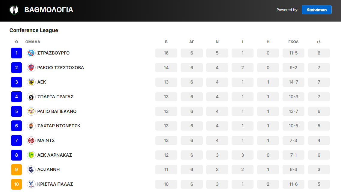 Πρόγραμμα ΑΕΚ Conference League