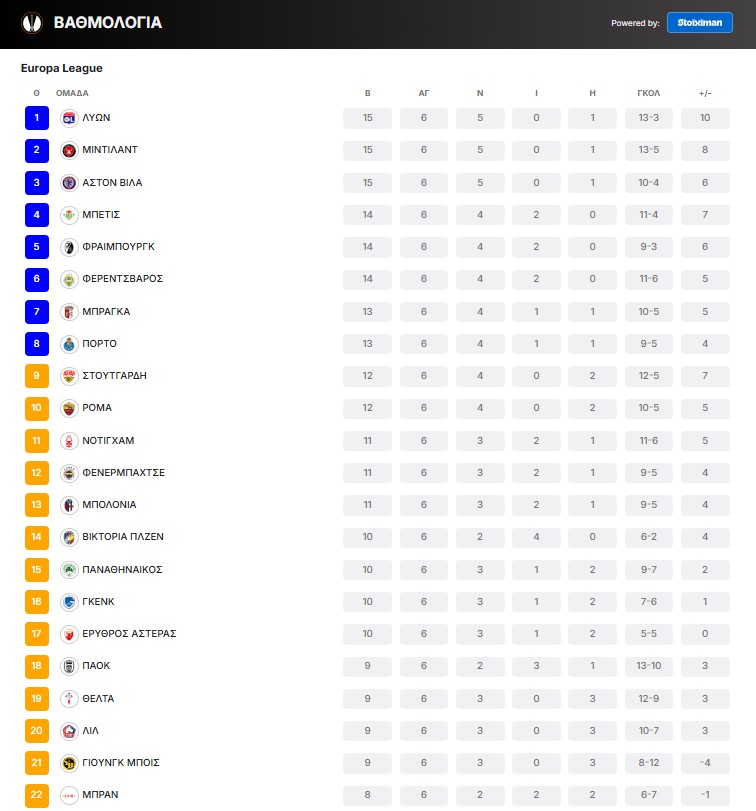 Για την ώρα, ο Παναθηναϊκός βρίσκεται 15ος στην κατάταξη της League Phase με δύο αγωνιστικές να απομένουν.