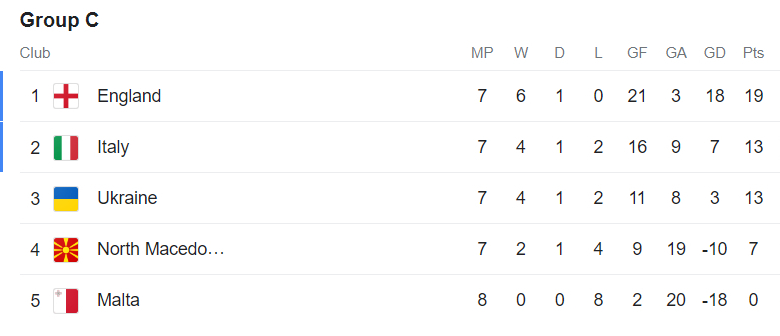 Την 7η και προτελευταία αγωνιστική στο γκρουπ, η Ουκρανία είχε ρεπό. Έτσι, η Ιταλία είχε την ευκαιρία να την «πιάσει» στους 13 βαθμούς και δεν την άφησε να πάει χαμένη. Οι «ατζούρι» υποδέχτηκαν στο «Ολίμπικο» της Ρώμης τη Βόρεια Μακεδονία με στόχο να μην την… πατήσουν όπως στις τρεις προηγούμενες συναντήσεις τους. Οι παίκτες του Λουτσιάνο Σπαλέτι μπήκαν αποφασιστικά στον αγωνιστικό χώρο και ως το ημίχρονο ήταν μπροστά στο σκορ με 3-0, για να φτάσουν εν τέλει στη νίκη με το επιβλητικό 5-2.