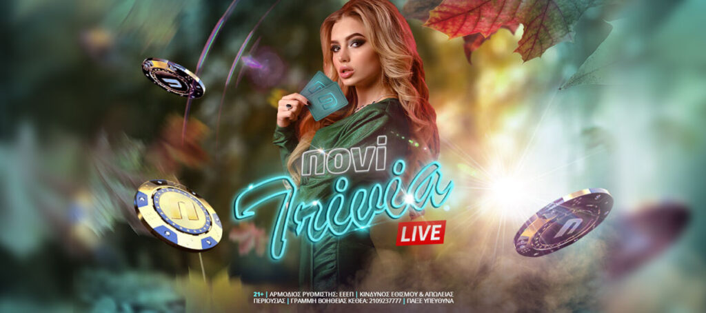 Το Novi Trivia Show είναι ένα ζωντανό παιχνίδι που εκπέμπεται από το live καζίνο, σε επιλεγμένες ημερομηνίες κάθε μήνα. Αυτό το Σαββατοκύριακο, δύο φανταστικές εκπομπές θα γεμίσουν τα απογεύματα του Σαββάτου και της Κυριακής στις 19:00!