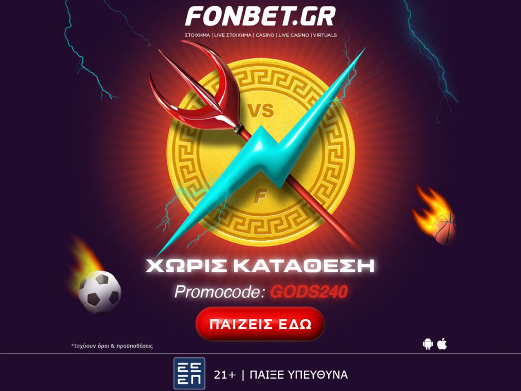 Από 23/01/2024 έως και 05/02/2024, έρχεσαι στη Fonbet, βάζεις promo code GODS240 και διασκεδάζεις σε έναν θεϊκό κόσμο γεμάτο δράση!