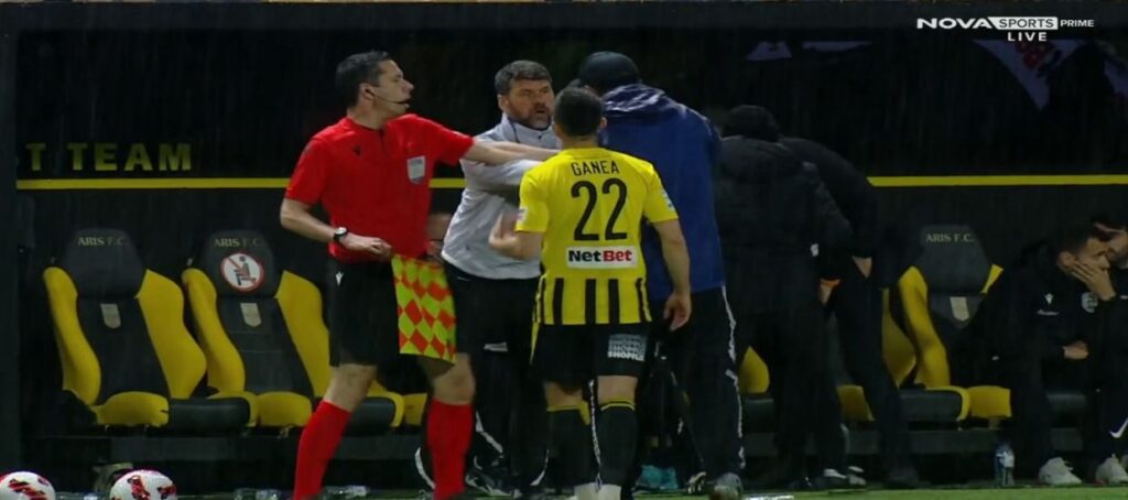 Μεγάλη ήταν η ένταση που επικράτησε κατά τη διάρκεια του πρώτου μέρους στο ντέρμπι της Θεσσαλονίκης κάτι που είχε ως αποτέλεσμα να αποβληθούν τόσο ο βοηθός του Ραζβάν Λουτσέσκου, Κριστιάν Μπάτσι, όσο και ο τεχνικός του Άρη Χερμάν Μπούργκος.