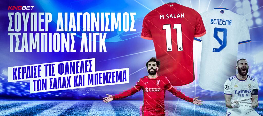 Η KingBet «ζεσταίνεται» για τον τελικό του Champions League και δίνει τη δυνατότητα σε δύο τυχερούς, να κερδίσουν τη φανέλα του Μο Σαλάχ ή του Καρίμ Μπενζεμά!