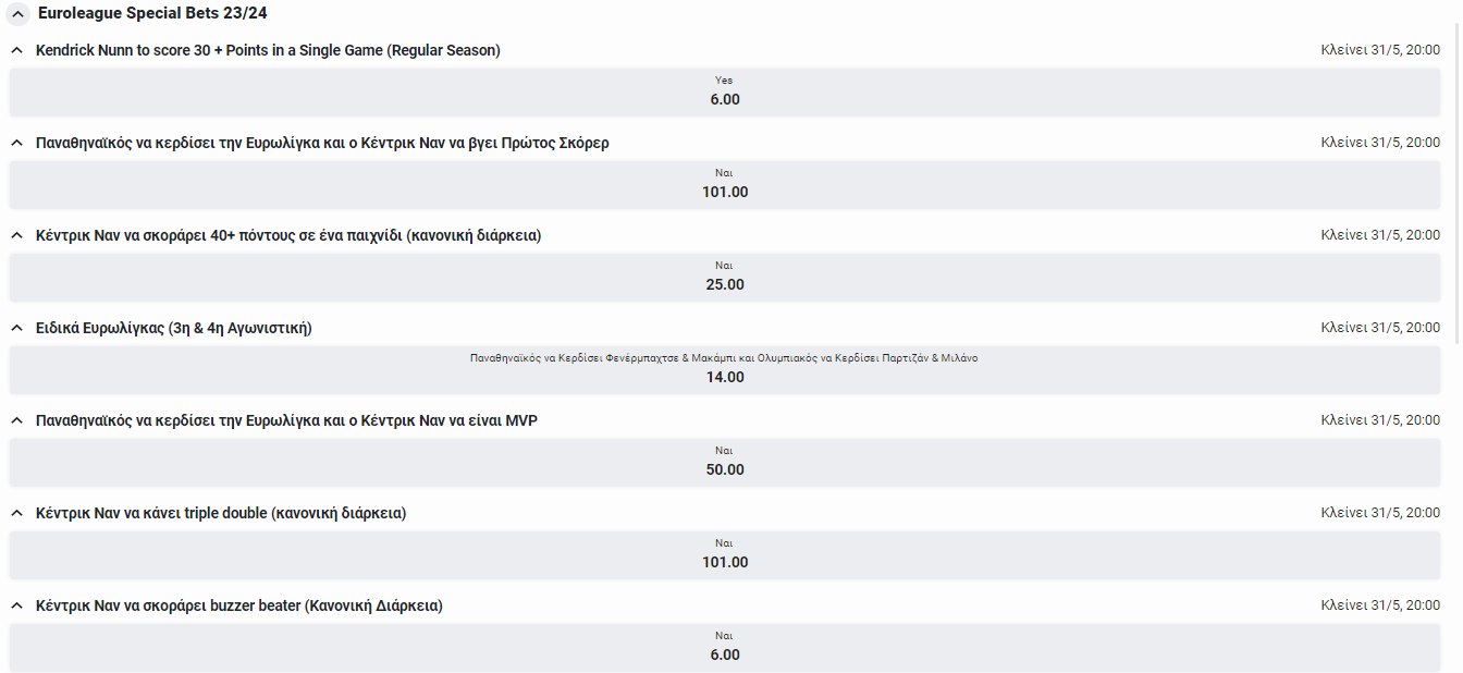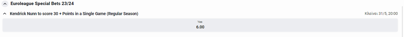 O Αμερικανός γκαρντ έχει πετύχει τέσσερις φορές πάνω από τριάντα πόντους σε αγώνα ΝΒΑ. Το career high του είναι οι 37 πόντοι που έβαλε τον Οκτώβριο του 2019 απέναντι στους Ατλάντα Χοκς. Να σημειωθεί ότι τον Μάιο του 2021 είχε πετύχει 31 πόντους σε αγώ με τους Μιλγκουόκι Μπακς του Γιάννη Αντετοκούνμπο. Για αυτό λοιπόν το Pamestoixima.gr έχει βγάλει ειδική προσφορά για τον νέο παίκτη του Παναθηναϊκού, με την επιλογή να σκοράρει σε ένα παιχνίδι τουλάχιστον 30 πόντους να προσφέρεται στην εξαιρετική απόδοση 6.00.