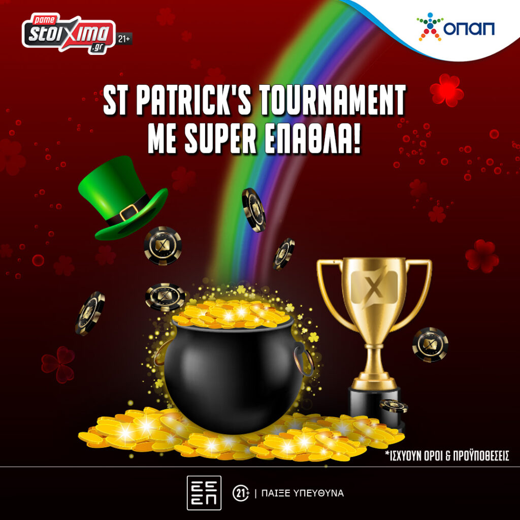 Από τις 15 Μαρτίου 12:00 μ.μ έως τις 18 Μαρτίου 11:59 π.μ, το μοναδικό τουρνουά Saint Patrick’s σε περιμένει στο Pamestoixima.gr!