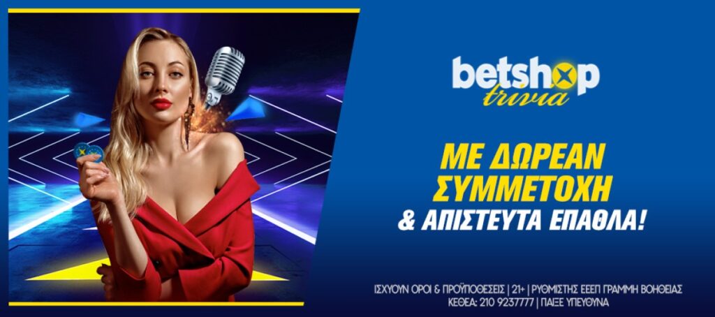 [betshop_desktop keimeno_etaireias=”Betshop Trivia: Ήρθε και γίνεται της … γνώσης! Απάντησε δωρεάν τις ερωτήσεις και φτάσε στην κορυφή των επάθλων! |21+ | Ρυθμιστής ΕΕΕΠ | Γραμμή βοήθειας ΚΕΘΕΑ: 210 9237777 | Παίξε Υπεύθυνα | Ισχύουν όροι & προϋποθέσεις” width=”100%”]