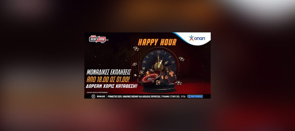 Τα απογεύματα της Παρασκευής αποκτούν άλλη αίγλη στο Pamestoixima.gr, καθώς κάθε Παρασκευή από τις 18.00 ως τη 01.00 σας περιμένει μια μοναδική προσφορά*, στην οποία δεν υπάρχει καμία προϋπόθεση τζίρου ή κατάθεσης. Την συγκεκριμένη προσφορά* θα την βρείτε μόνο σήμερα Παρασκευή και μόνο για τις ώρες στις οποίες τρέχει η προσφορά* Happy Hour, από τις 18.00 ως τη 01.00.