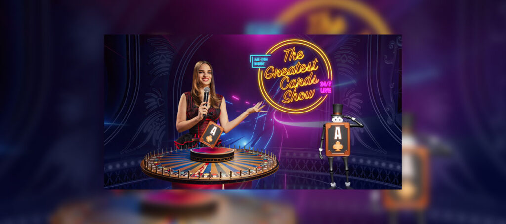 Στο “The Greatest Live Cards Show” όλα τα φύλλα μίας τράπουλας εμφανίζονται σε έναν εντυπωσιακό τροχό και δίνουν ένα λαμπερό show γεμάτο γύρους επιβράβευσης και πολλαπλασιαστές έως x5.000.