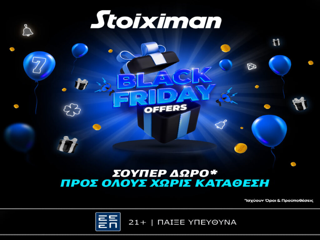 Black Friday εβδομάδα στη Stoiximan και η Τρίτη έρχεται με σούπερ δώρο* για όλους χωρίς κατάθεση αλλά και την τρομερή προσφορα* γνωριμίας!