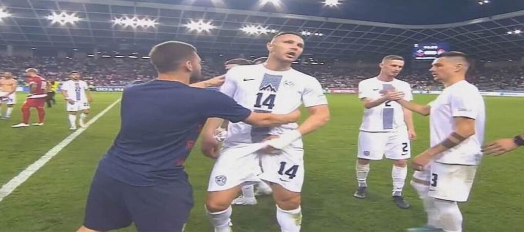 Η άσεμνη χειρονομία του Γιάσμιν Κούρτιτς μετά το τέλος του αγώνα της Εθνικής ομάδας της χώρας του με τη Σερβία προκάλεσαν έντονο εκνευρισμό στους Σέρβους καθώς φαίνεται πως ο ποδοσφαιριστής του ΠΑΟΚ απευθύνεται προς την κερκίδα. Μάλιστα, δίπλα του έσπευσε και ο Αντρίγια Ζίβκοβιτς σε μία προσπάθεια να ρίξει τους τόνους…