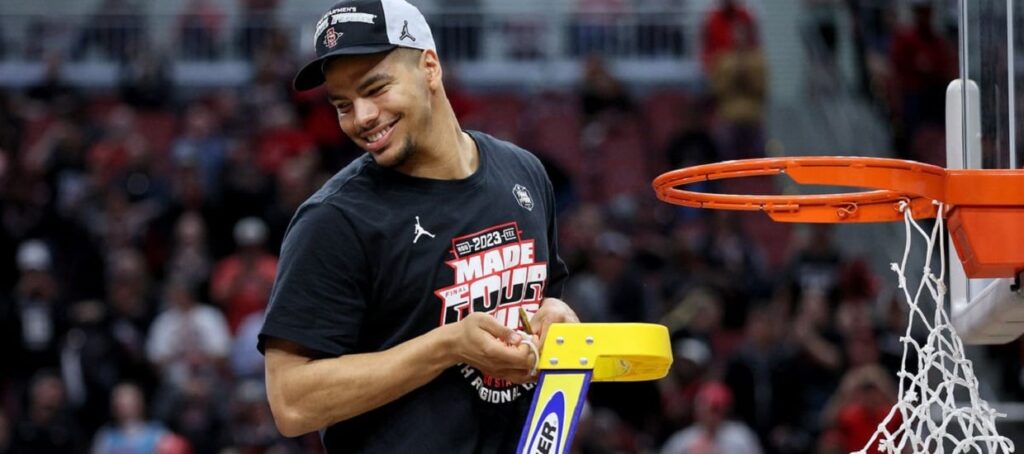 Στο Elite 8 τα δύο πανεπιστήμια έπαιξαν μεταξύ τους. Η κυρία Εύα, στην εξέδρα, ήξερε πως το ταξίδι στο Χιούστον θα το κάνει για έναν από τους δύο. Ένας από τους κανακάρηδές της θα έφτανε στο Final 4. Και ήταν ο πρωτότοκός της. Αυτός έκοψε το διχτάκι στο φινάλε του τελικού της περιφέρειας, όπως προστάζει το έθιμο (κι ας έχει εμπορευματοποιηθεί με τις τόσες χορηγίες). Αυτός θα προσπαθήσει να βοηθήσει τους Άζτεκς να φτάσουν στο τρόπαιο για πρώτη φορά στην ιστορία τους.