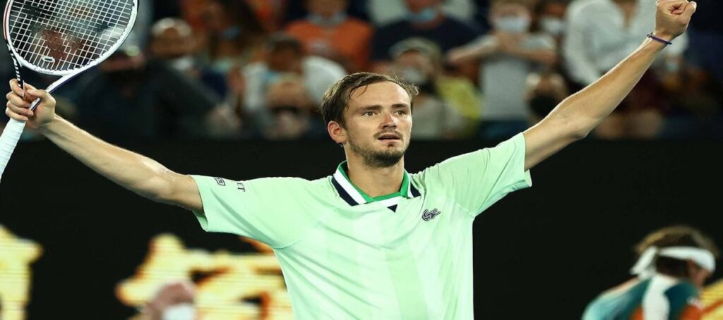 Ο Μεντβέντεφ από την άλλη κέρδισε τον Τσιτσιπά με 3-1 έχοντας 4/12 κερδισμένα μπρέικ πόιντς. Εβγαλε 13 άσους και κράτησε το ποσοστό κερδισμένων πόντων από πρώτο σερβίς στο εντυπωσιακό 86%. Για ημιτελικό τέτοιου επιπέδου το συγκεκριμένο ποσοστό είναι πολύ υψηλό. Πάντως στους τρεις προηγούμενους γύρους έχασε τουλάχιστον ένα σετ, ενώ στο τουρνουά χάρισε ένα σετ παραπάνω από τον Ισπανό (5 συνολικά).