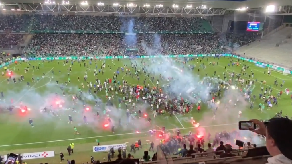 Στα άσχημα του Σαββατοκύριακου, τα επεισόδια που είδαμε στο Παρίσι, στη Χάγη και στο Σεντ Ετιέν (φωτό). Τελειώνει η διαδικασία των πέναλτι στο «Ζοφρουά Γκισάρ», η Οσέρ επιστρέφει στη Ligue 1 μετά από 10 χρόνια απουσίας, η Σεντ Ετιέν υποβιβάζεται για 5η φορά στην ιστορία της και οι οπαδοί της κάνουν ντου στο τερέν κυνηγώντας όποιον βρουν μπροστά τους με πυρσούς και καδρόνια. Πέραν της οικονομικής καταστροφής που συνεπάγεται ο υποβιβασμός (κοντά στα 40 εκ. ευρώ χασούρα), βλέπω και πολύ βαριά καμπάνα του γηπέδου, καθώς ήταν ήδη υπότροπη. Κι αν χαλάσει τελικά η εξαγορά της ομάδας από τον Αμερικανό μεγιστάνα Ντέιβιντ Μπλίτζερ, μάλλον θα αργήσει να ξαναβρεθεί στα σαλόνια, όπως συνέβη και την προηγούμενη φορά που έπεσε. Ηδη ακούγεται έντονα στη Γαλλία ότι Μπορντό και Σεντ Ετιέν δεν θα δηλώσουν συμμετοχή στη Ligue 2, αλλά στη National. Ετσι είναι η ζωή και το ποδόσφαιρο, κύκλους κάνει. Με τις χαρές και τις λύπες του, “εδώ είναι ο παράδεισος κι η κόλαση εδώ“, που έλεγε η τεράστια Βίκυ Μοσχολιού στο έπος “Ξενύχτησα στην πόρτα σου”.