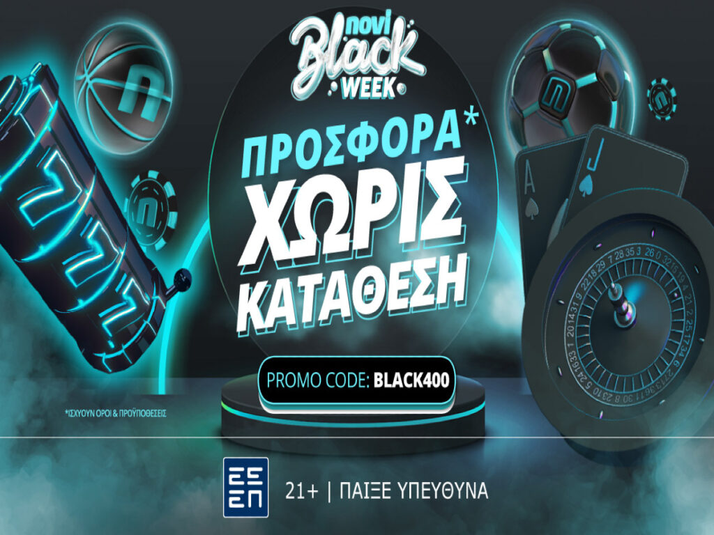 Με το ενδιαφέρον να εστιάζει στη Black Week ενώ πλησιάζουμε στην τελευταία Παρασκευή του Νοεμβρίου και οι προσφορές* στη Novibet κινούνται σε αντίστοιχους ρυθμούς!