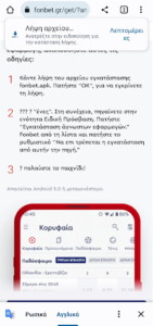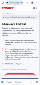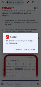 1) Ανοίξτε τον browser του κινητού σας και πληκτρολογήστε fonbet.gr. Πατήστε στο κουμπί ΕΓΚΑΤΑΣΤΑΣΗ.