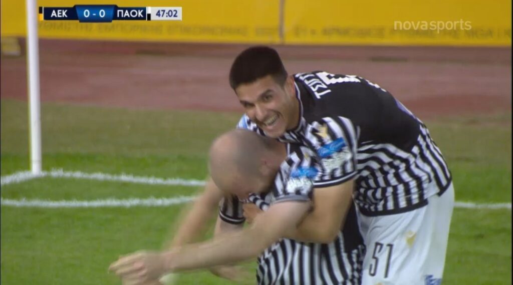 Σε ένα… καυτό τετράλεπτο στις αρχές του δευτέρου ημιχρόνου, ο ΠΑΟΚ κατάφερε και βρήκε τον δρόμο προς την εστία της ΑΕΚ δύο φορές, αρχικά με τον Κρμέντσικ στο 47′ μετά από ωραίο γύρισμα του Ουάρντα, και στη συνέχεια στο 50′ με εύστοχη εκτέλεση πέναλτι του Σβαμπ.